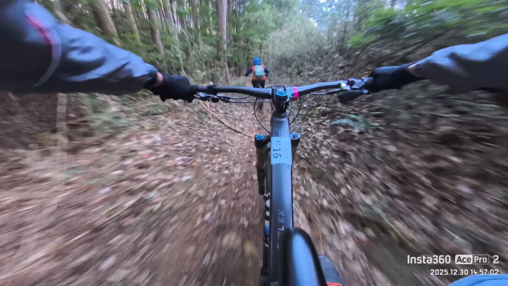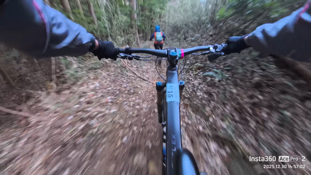 とにかくもう、平地や登りでは漕ぐのがかなり辛い状況で、また下りでもなかなかスピードが乗っていかない状況でした。やっぱり、Good Year Escape MAX – Trail Lite – Grip3 29 x 2.4だとドライコンディション向けタイヤに比べてスピードが伸びていかない感じがします。