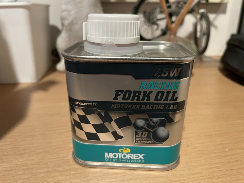 MOTOREX RACING FORK OILです。これで、DVO DIAMONDのストローク変更にチャレンジできます。